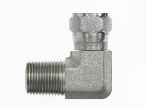 Item # 02481507, Brennan 1/2 Inch (in) Female Joint Industry Council (JIC) 37 Degree Flare Swivel x 3/8 Inch (in) Male Pipe Rigid End Style 90 Degree Elbow